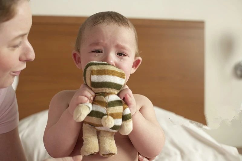 “看见生人就哭,看见毛绒玩具也不敢动。”